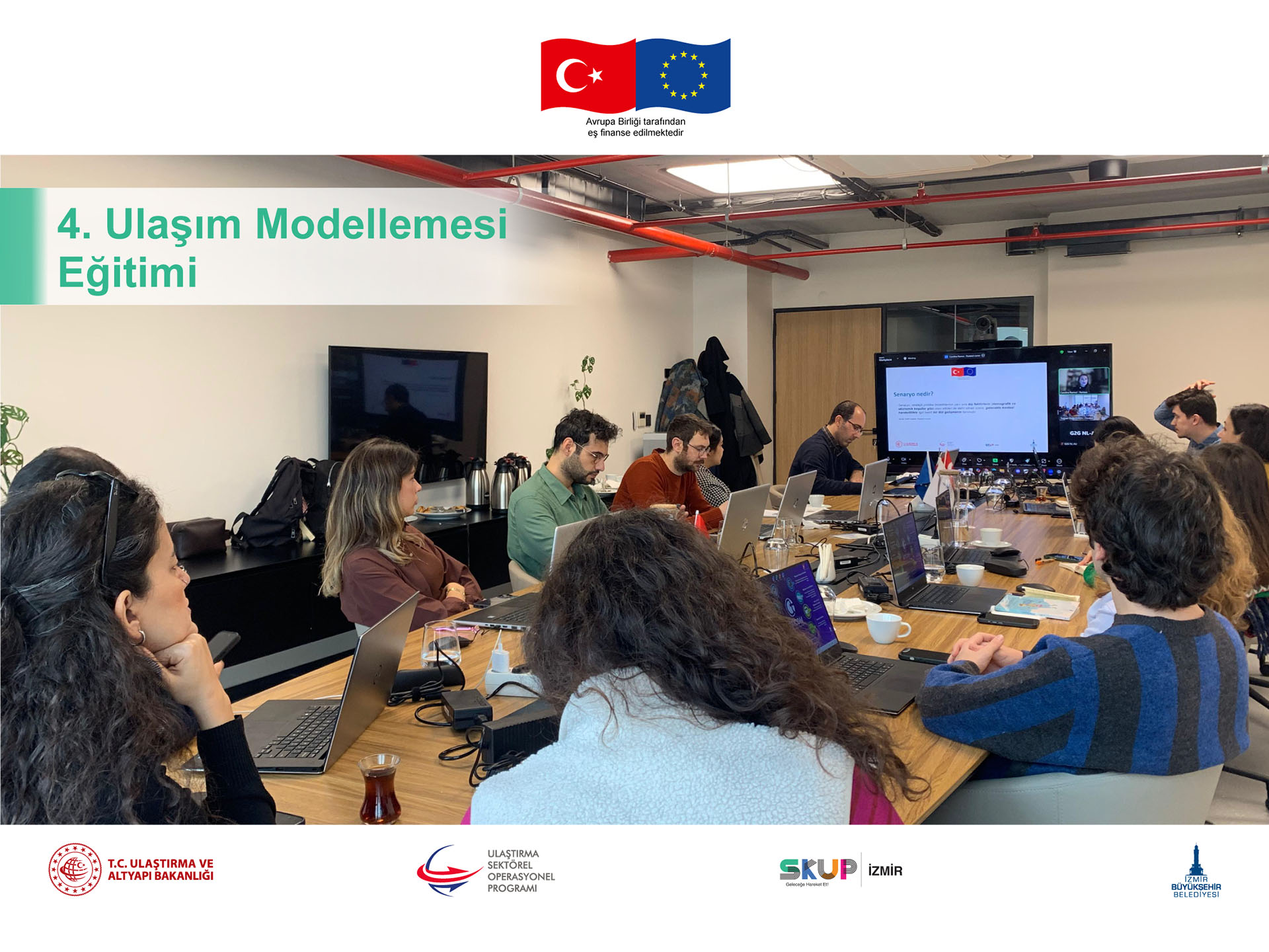 Eğitimin amacı, ulaşım modellemesi bileşenlerine ve SKUp İzmir ABM’e dair ayrıntılı bilgiler sunmak, ayrıca eğitime dahil edilen uygulamalı çalışmalar ile İzmir Büyükşehir Belediyesi ekibinin SKUp İzmir kapsamında geliştirilen ABM’i etkin bir şekilde kullanabilmesini ve yetkinliklerinin geliştirilmesini sağlamaktır. Uygulamalı çalışmalar yoluyla büyüme tahmini, gelecek referans yıllara göre değişiklikler ve değişikliklerin modelde uygulanması, ayrıca SKUp İzmir ABM kullanılarak senaryo geliştirilmesi ve örnek senaryoların modelde uygulanması çalışmaları gerçekleştirildi.