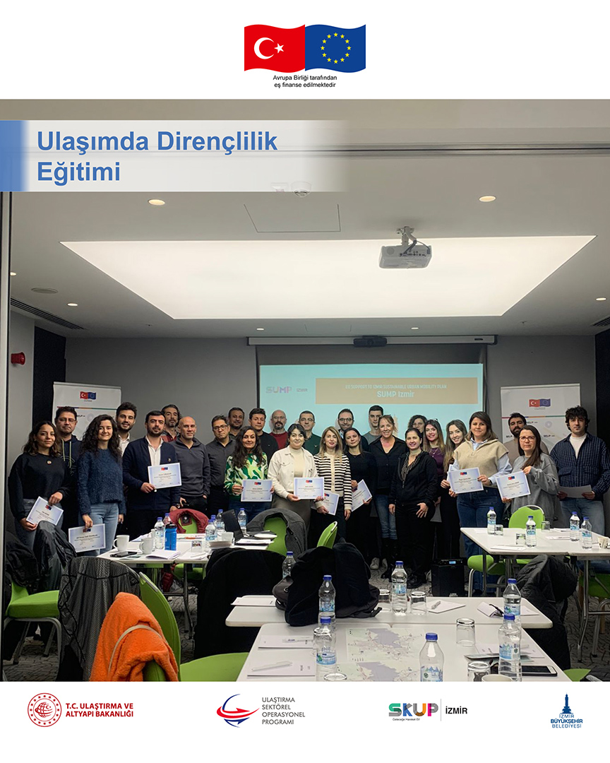 SKUp İzmir Projesi kapsamında üç gün süren “Ulaşımda Dirençlilik” eğitimi Doç Dr. Meltem Şenol Balaban ve Prof. Dr. Ela Babalık tarafından, İzmir Büyükşehir Belediyesinin ilgili birimleri ve iştirakleri ile ilçe belediyelerinden uzmanların katılımıyla gerçekleştirildi.