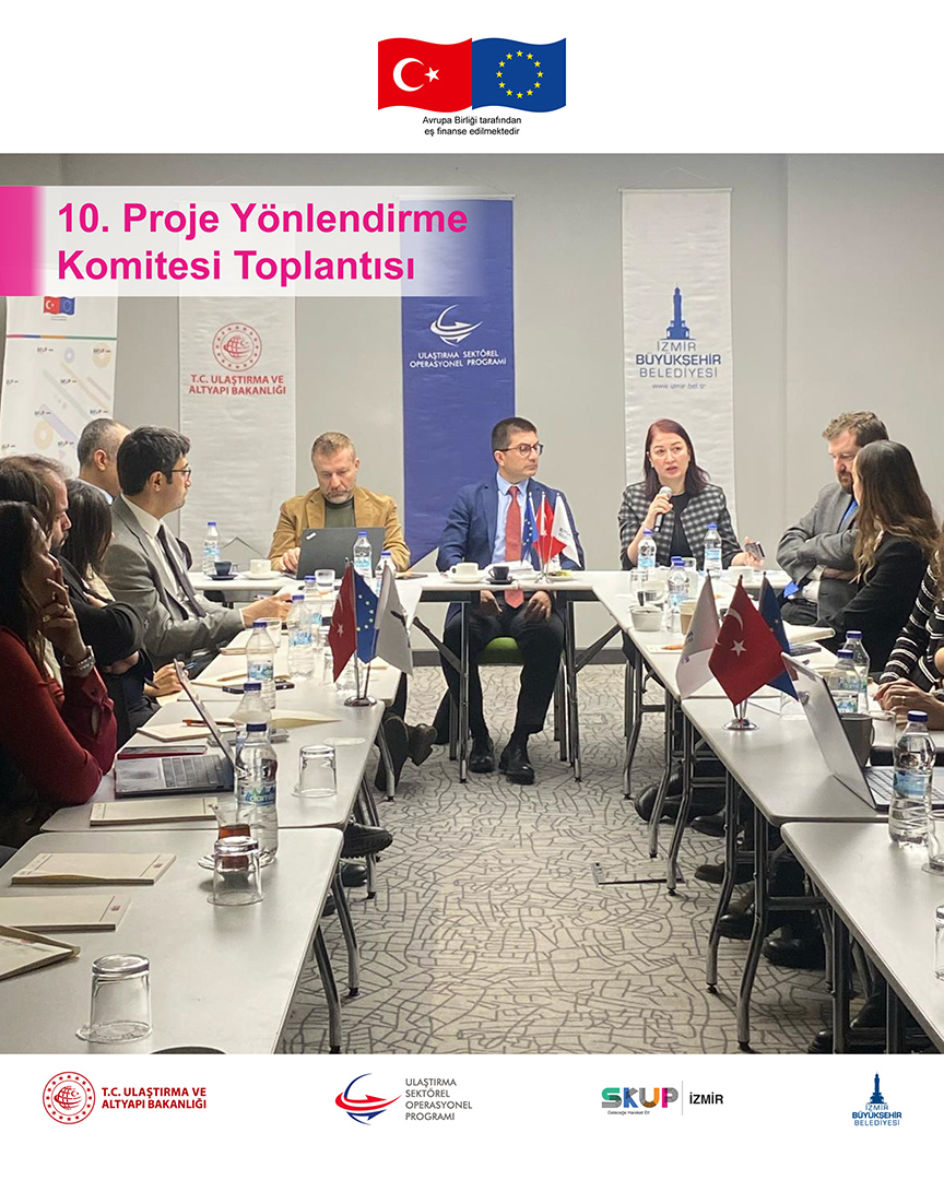 SKUp İzmir Projesi 10. ve Nihai Proje Yönlendirme Komitesi Toplantısı, İzmir Büyükşehir Belediyesi Başkan Danışmanı Prof. Dr. Yalçın Alver, İzmir Büyükşehir Belediyesi SKUp İzmir Projesi teknik koordinasyon ekibi, Ulaştırma ve Altyapı Bakanlığı AB Yatırımları Dairesi Başkanı Dr. Tijen İğci, AB Türkiye Delegasyonu Ulaştırma Sektör Yöneticisi Dr. Göktuğ Kara, Ulaştırma ve Altyapı Bakanlığı temsilcileri, Konsorsiyum Lideri Panteia firması Direktörü Menno Menist, SKUp İzmir Projesi Takım Lideri Prof. Dr. Ela Babalık ve Konsorsiyum ortaklarının temsilcilerinin katılımıyla gerçekleşti. Toplantıda faaliyetlerin mevcut durumu sunuldu ve sonuçlandırmaya yönelik stratejiler tartışıldı.